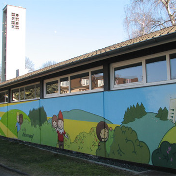 Die Evangelische Kindertagesstätte Erlöserkirche Fasanenhof besteht aus vier Kindergartengruppen und einer Krippengruppe. Wir bieten Plätze für bis zu 112 Kinder im Alter von 10 Monaten bis Schuleintritt an.Die Einrichtung liegt in unmittelbarer Nachbarschaft der Evangelischen Erlöserkirche Fasanenhof am Mülhäuser Platz und verfügt über mehrere Außenspielgelände. Sie gehört zur Evangelischen Hoffnungskirchengemeinde Kassel.