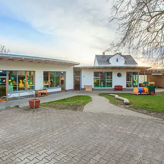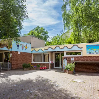 Die Kindertagesstätte befindet sich seit 1947 im Erdgeschoss eines als Pfarrhaus errichteten Gebäudes. Sie wird von einem großzügigen Außengelände umrahmt, welches die Kinder täglich nutzen. Eine Grundschule ist in unmittelbarer Nähe angesiedelt.